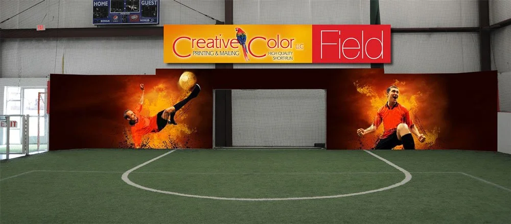 The signage was designed for display on one of the indoor soccer fields at the Fredericksburg Fieldhouse. Glenn Gemmell was the Creative Director, Designer and Copy Writer.