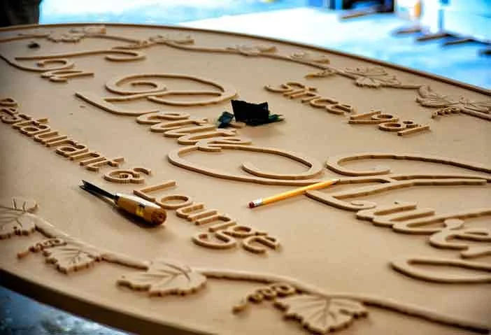 During the customer consultation phase, I received a rough sketch of the owners' vision for the sign, which included a grapevine border, an art reference to food and wine, since 1981, and the artwork to use for the restaurant’s name.